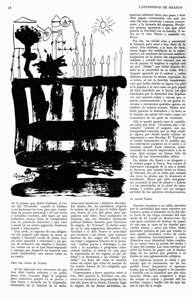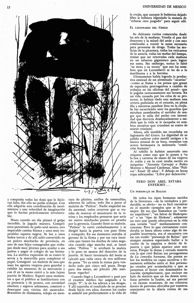 En cambio, los otros episodios del Diario de Lecumberri, las anécdotas de la vida carcelaria y de sus personajes, narradas en un tono totalmente distinto, nos dan un atisbo del talento de Mutis cuando se enfrenta francamente al oficio, a la peculiaridad de la prosa. El Diario nos habla de una plaga que cayó sobre la prisión, espectro nuevo en una vida de terrores: la heroína falsificada que circulaba entre los reclusos y cuyo empleo les resultaba mortal; de un avaro «personaje de Balzac», cuyo vicio exuberante alcanza a contaminar, en forma material, las nada asépticas paredes de Lecumberri; de «El Palitos», el drogómano afeminado de 22 años que, muerto, «me recordó un legionario del Greco»; de Rigoberto Vadillo, otro personaje fabuloso que en una noche de lluvia y de intoxicación le enumera una larga, escalofriante e increíble cadena de asesinatos; de la congregación de seres taciturnos que se tornan locuaces sobre sus miserias y sus sueños al conjuro de las salas anónimas del baño de vapor. Aquí, los relatos de Mutis se ende-rezan hacia el realismo; más que de su propia imaginación, quiere dar testimonio de realidades y de imaginaciones ajenas. Y, sorprendentemente, esta constancia modesta de las sordideces y de los delirios de unos pobres seres resulta al mismo tiempo mucho más alucinante y mucho más concreta que las ambiciosas incursiones del autor por el campo de la eternidad y de las mitologías. La verdad de lo visto y de lo vivido en Lecumberri se transforma literariamente en una realidad simultáneamente horrenda y seductora; lo que quiso ser una descripción escueta se convierte en poesía.