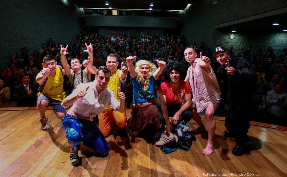 Escena final de la obra presentada por el Grupo de Teatro Abrakadabra, dirigido por Adrián Cardona, y conformado por personas privadas de la libertad del Establecimiento Carcelario La Modelo. La pieza fue hecha especialmente para la celebración de los 50 años de la Facultad de Derecho de la Universidad de Los Andes. La puesta en escena fue un collage de ida y vuelta a un juicio donde una persona, que puede ser cualquiera de nosotros, cayó de un momento a otro en el laberinto del aparato policivo y judicial y ahí, víctima de los poderes estatales, morales y mediáticos, pasan más de 15 años para que este ciudadano logre recobrar su libertad. El parecido con los casos judiciales de algunos de los integrantes del grupo no es mera coincidencia. ¿Cómo narrar esta absurda y terrible situación? Bueno, al menos produjo arte, para eso es lo único que sirve esta tragedia…