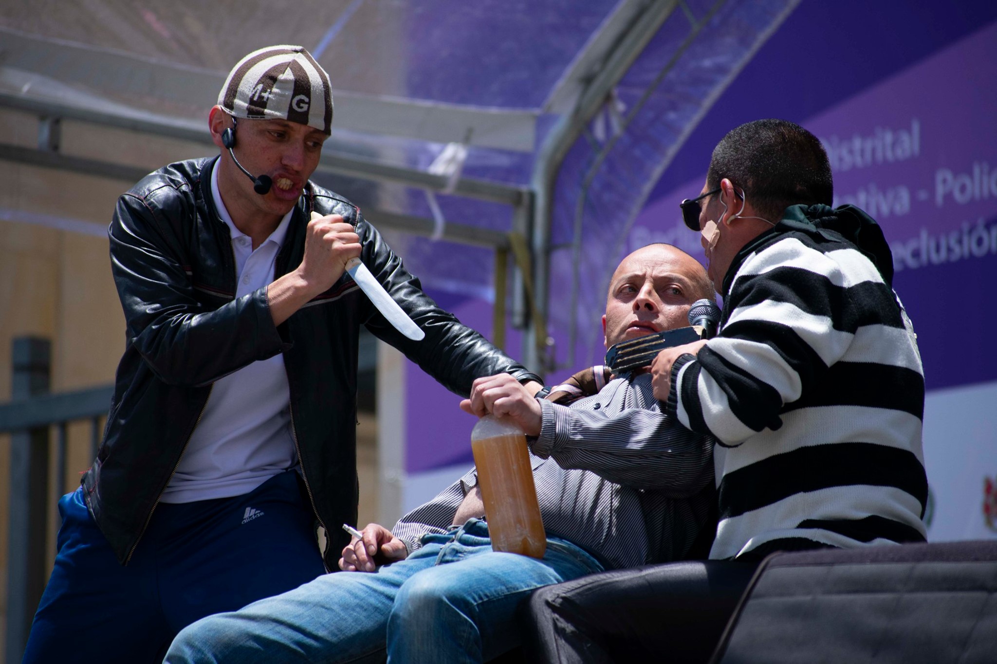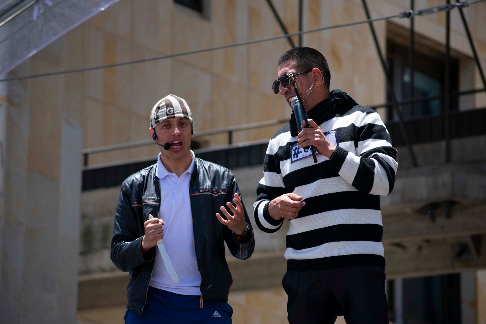 El grupo de teatro Abrakadabra presentó la obra «El suicidio», escrita y dirigida por Adrián Cardona, en la tarima de Expotalentos 2019 en la Plaza de Bolívar. Esta vez el curso Arte y Activismo tuvo el placer de acompañarlos y disfrutar de su presentación. El arte es libertad