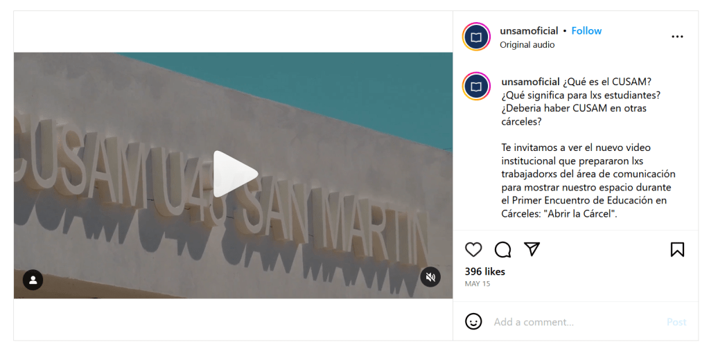 Lectura de la cuenta de Instagram del CUSAM: @cusam.unsam