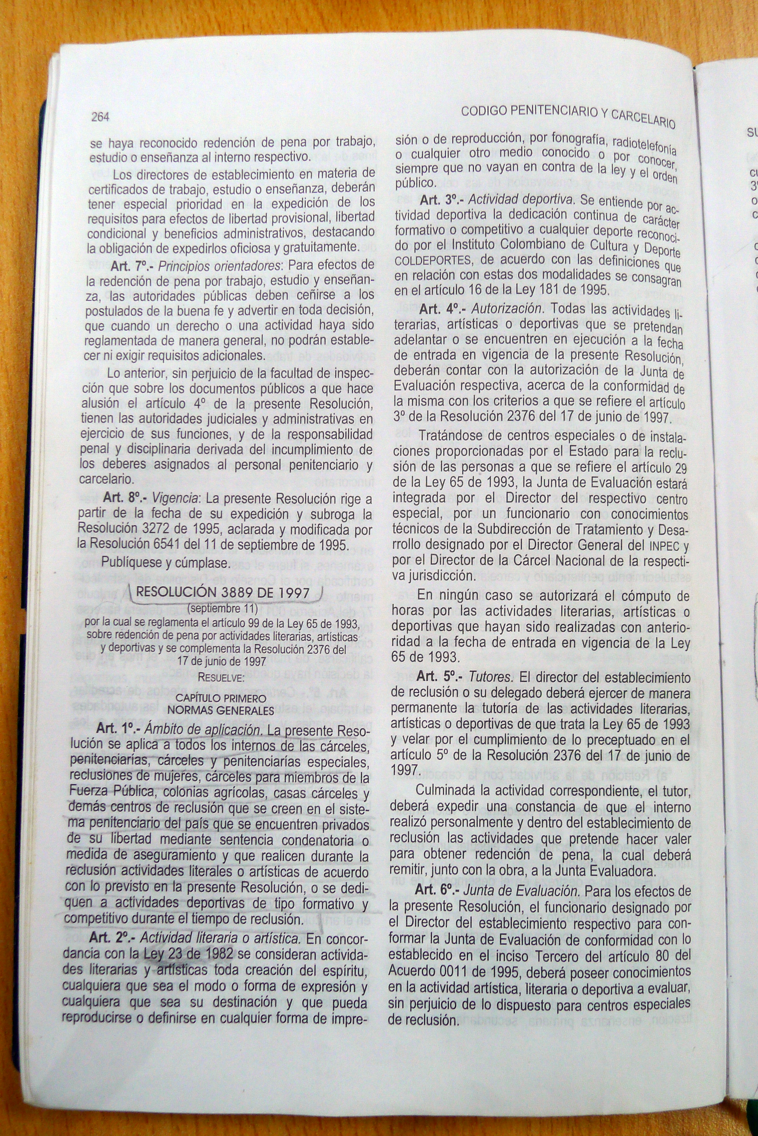 Por la cual se reglamenta el artículo 99 de la Ley 65 de 1993, sobre redención de pena por actividades literarias, artísticas y deportivas, y se complementa la Resolución 2376 del 17 de junio de 1997
