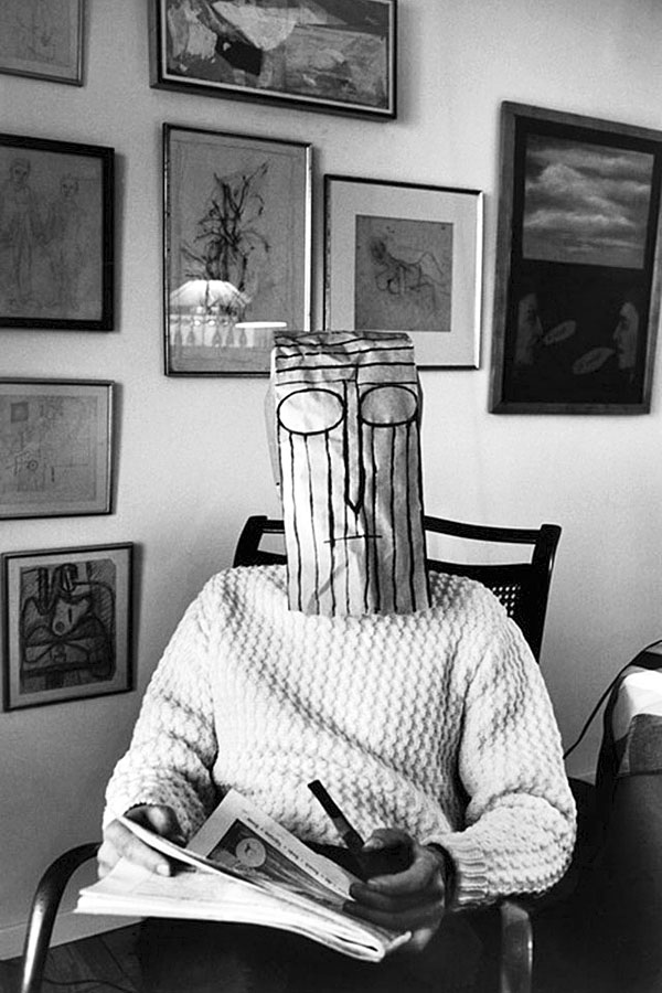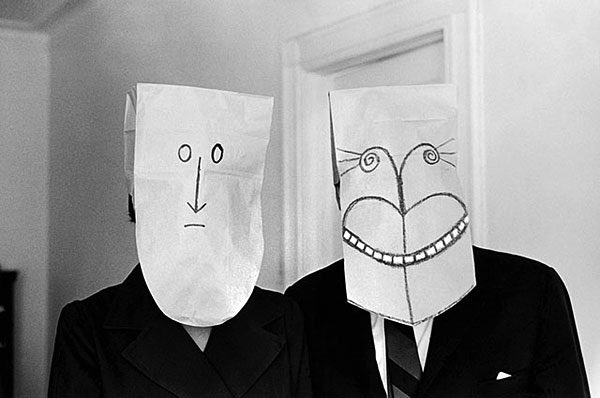Entre 1959 y 1962 el artista estadounidense Saul Steinberg produjo máscaras de papel que se hicieron famosas gracias a las fotografías tomadas por Inge Morath. La idea del disfraz es fundamental en el arte de Steinberg. En el mundo, tal y como él lo veía, todo el mundo lleva una máscara, ya sea real o metafórica. La gente inventa personajes a través del maquillaje, la expresión facial y los peinados, y estas fachadas se convierten en lo que son. «La máscara», escribió Steinberg, «es una protección contra la revelación.»